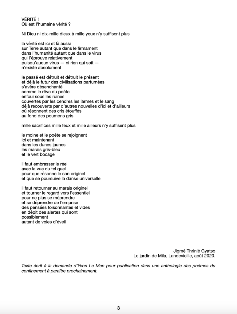 Poème de Jigmé Thrinlé Gyatso écrit à l’occasion du S.A.C.R.E
